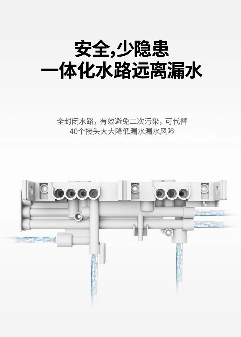 同時(shí)百吉凈水器A系列高端凈水器,采用一體水路結(jié)構(gòu),絕對不會(huì)漏水,少隱患,安全。同時(shí)全封閉水路有效避免二次污染,
